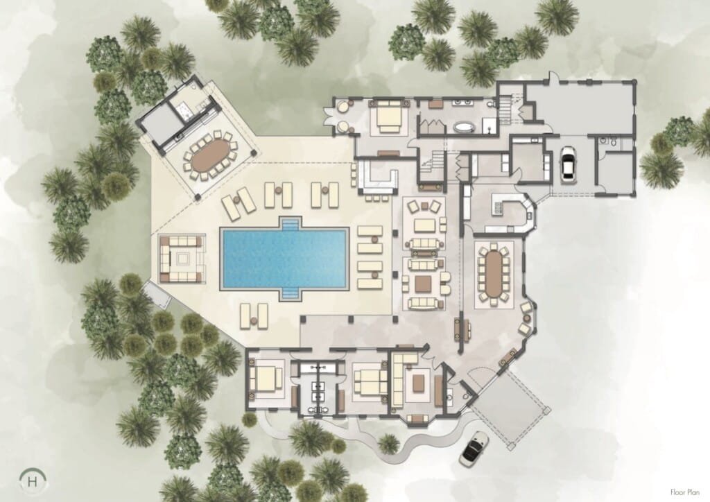 Room layout: 3 bedrooms on the main level | 2 bedrooms on the upper level | 2 x one bedroom attached cottages on the lower level