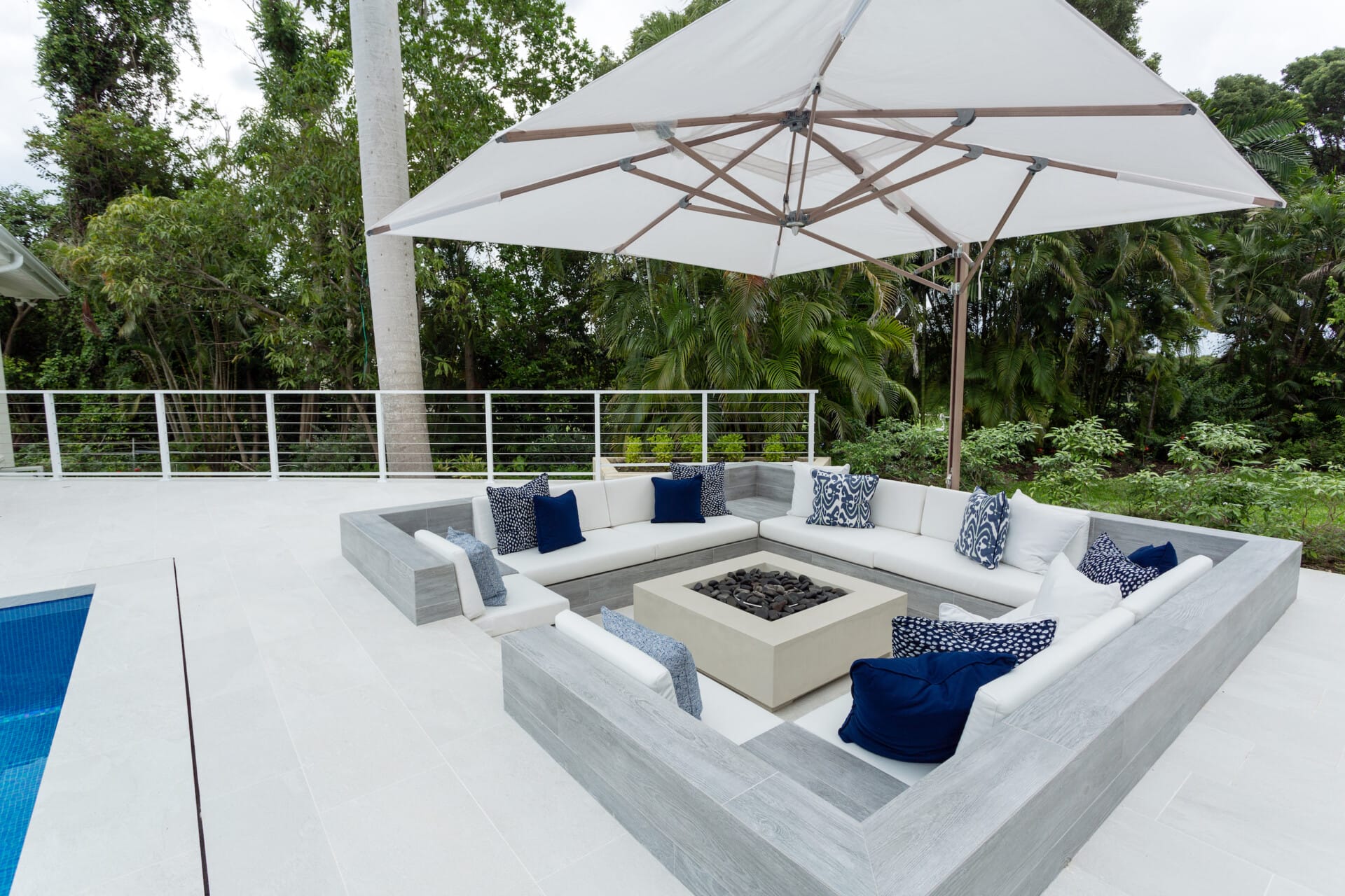 Fire pit lounge (unique & so pretty at dusk. Easily transformed if not desired)