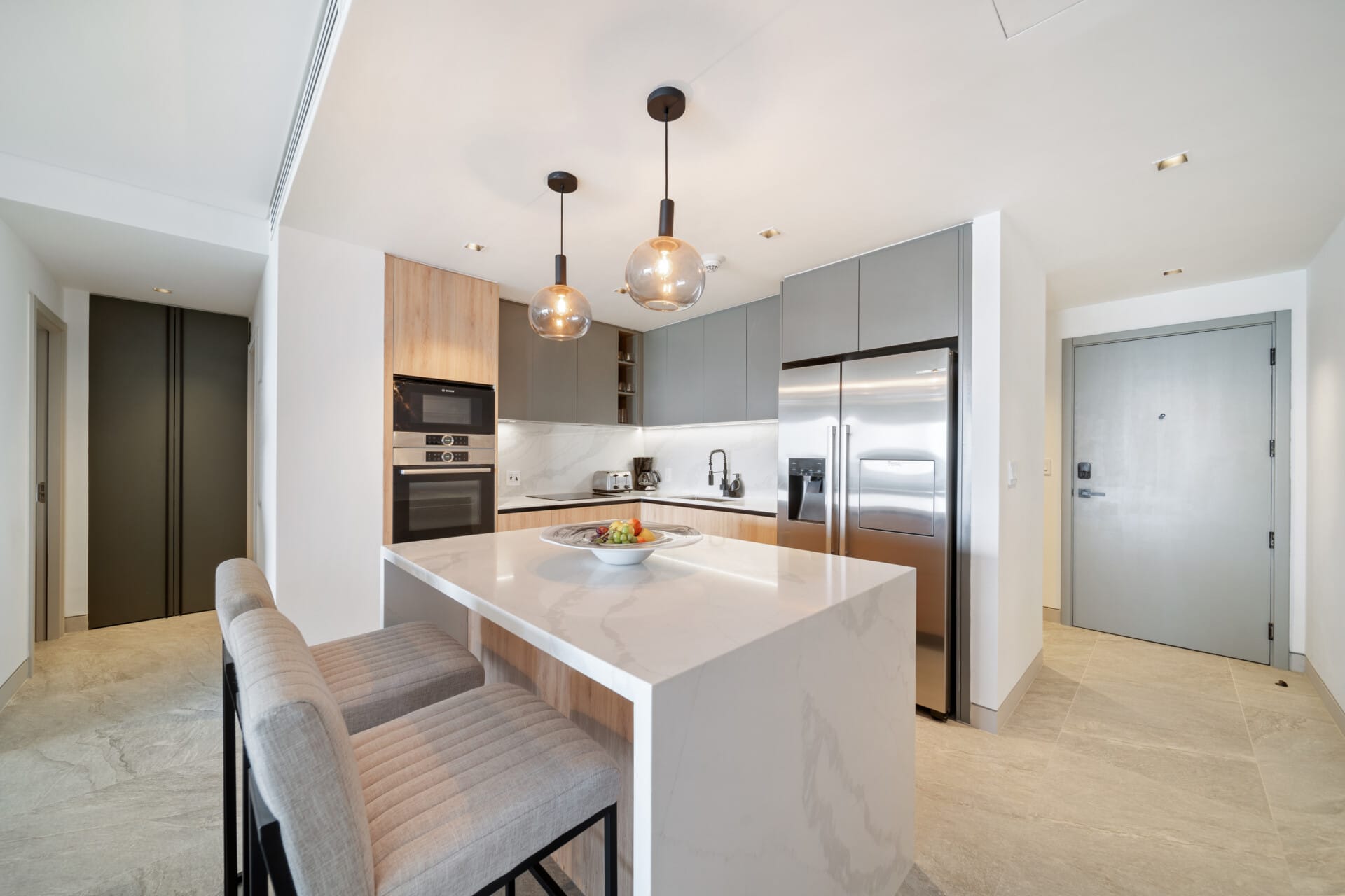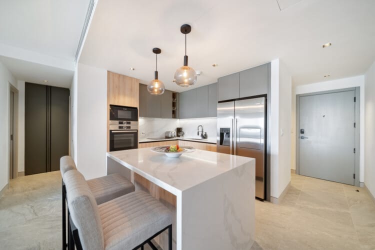 Whether you’re traveling as a couple, with family, or a group of friends, Allure 402 is designed to make you feel instantly at home. The open-plan living area is light and airy, featuring floor-to-ceiling windows that frame calming ocean views. Unwind in the evenings with the smart TV, or share a meal in the fully equipped kitchen complete with premium appliances and a casual breakfast bar.