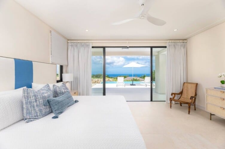 Sprawling over 4,000 square feet, this modern residence is thoughtfully designed to provide both elegance and comfort. Two bedrooms grace the ground floor, while the upper level houses an additional two bedrooms, including the master suite. Opening onto a west-facing terrace, the master suite creates an idyllic setting for indulging in morning serenity with a cup of coffee or savoring sunset cocktails amidst panoramic vistas. Each bedroom is accompanied by its own en-suite bathroom, ensuring privacy and convenience for every guest.