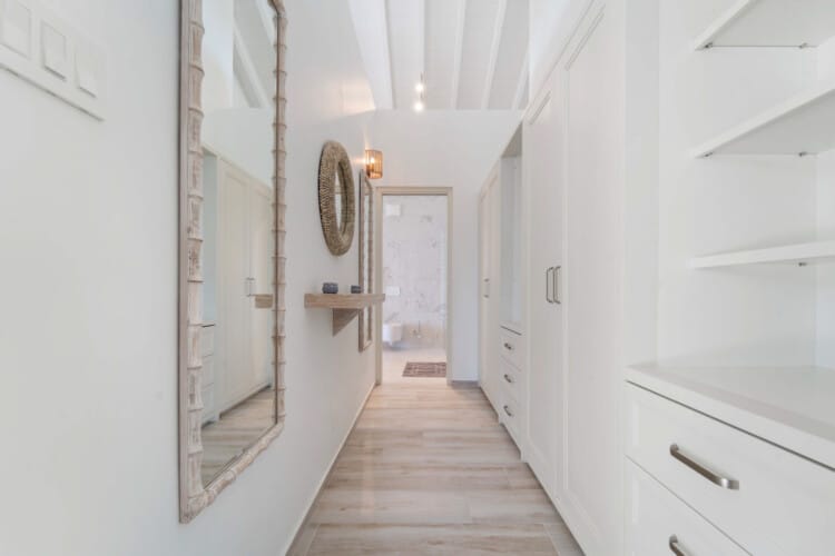 The exterior boasts a private oasis complete with a lap pool and sun loungers, BBQ grill, pool table, and dedicated pool washrooms. A private garden pathway leads directly to Gibbes beach through a secure gated entrance, while an outdoor shower makes post-swim refreshes a breeze. As the sun sets, gather around the firepit with a drink in hand, watching catamarans glide past on the horizon. For those seeking balance and wellness, Calabash also features a fully equipped gym and a spa area with a massage table for in-villa treatments.