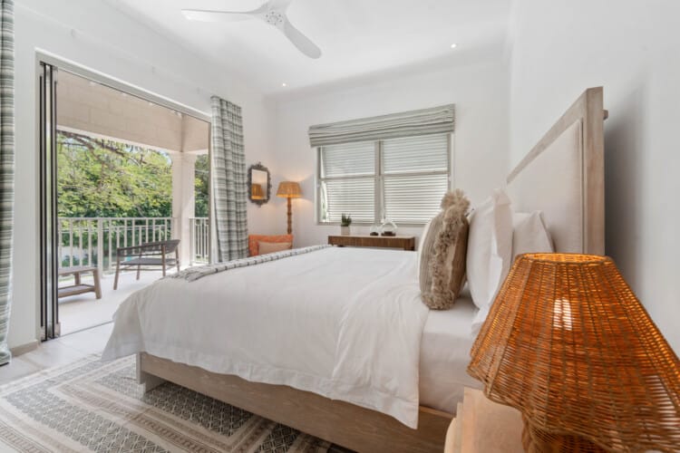 Upstairs, all six air-conditioned bedroom suites are thoughtfully designed with comfort and privacy in mind. Five offer en-suite bathrooms, while the two master suites boast breathtaking ocean views and share a private balcony, perfect for quiet mornings or golden-hour sunsets. Two additional suites also share their own balcony, providing serene garden views.