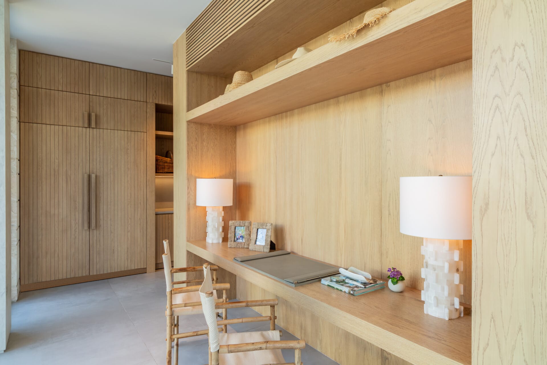 The layout is generous and considered, with eight ensuite bedrooms spread across the main house and separate guest spaces, making it ideal for extended families or groups of friends travelling together. Interiors remain calm and uncluttered, with a focus on comfort, privacy and understated luxury. A sunken media lounge, office space and seamless technology throughout ensure the house works just as beautifully for long stays as it does for a special escape .