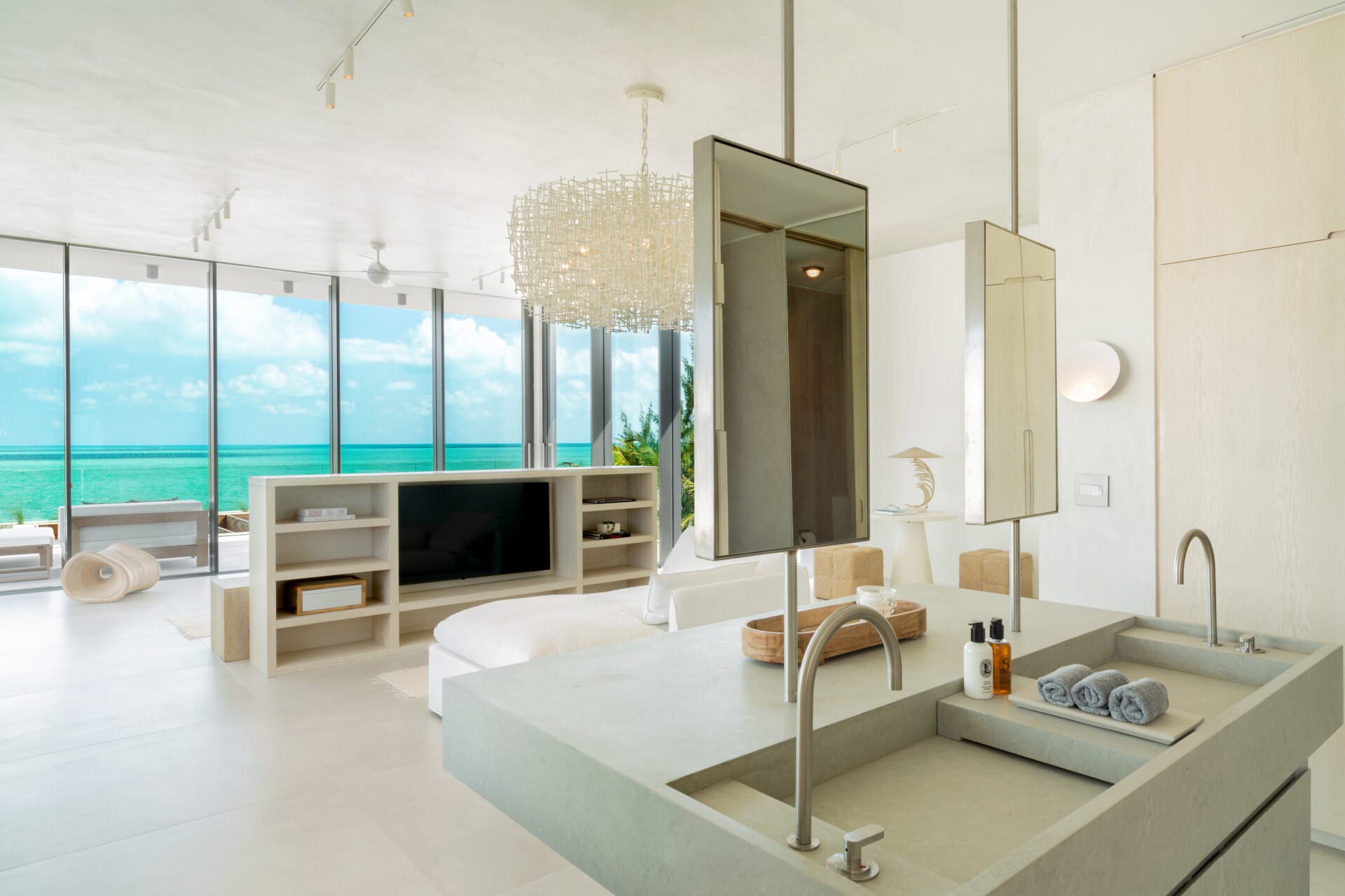 Beyond the villa, Long Bay Beach stretches wide and quiet, its fine white sand and steady breeze perfect for paddleboarding, cycling along the shore or simply doing very little at all. For those who enjoy staying active, the property offers everything from a Peloton bike to a pickleball court, while a villa host, daily chef and concierge team take care of every detail, leaving guests free to fully unwind .