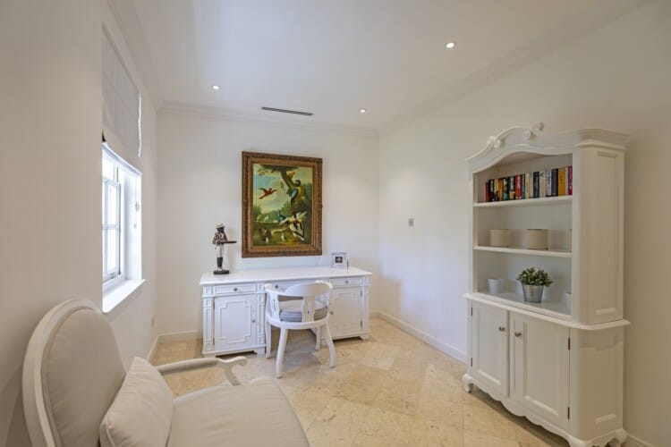 The property features a four-bedroom main villa and a two-bedroom guest cottage, offering privacy and space for larger groups. There is also an office which has been converted into a seventh bedroom. The cottage is fully equipped with its own kitchen, open-plan living area, and en suite bedrooms with king size beds.