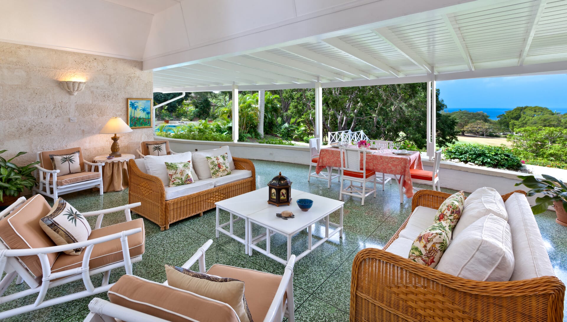 The expansive covered terrace is the ideal setting for relaxed outdoor living, perfect for sunset cocktails, family dinners, or simply soaking in the cooling trade winds and panoramic vistas. Wander down through the landscaped gardens and you’ll find a private oasis, ideal for intimate celebrations. The grounds are particularly well suited for a romantic island wedding of up to 50 guests.