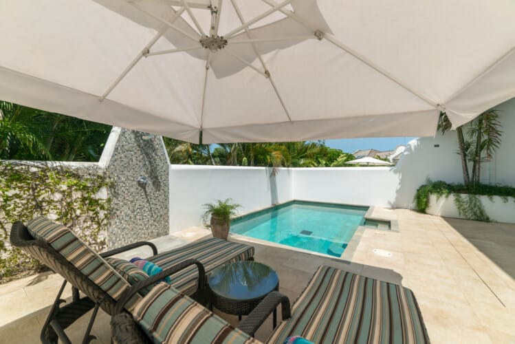 Outside, the pool area is ideal for sunbathing or a quiet afternoon dip, with access to Sugar Hill’s manicured lawns, perfect for a family picnic or leisurely stroll. Guests enjoy full use of the resort’s world-class amenities, including two communal pools, tennis courts, a gym, and an on-site restaurant overlooking an infinity pool and the sea beyond.