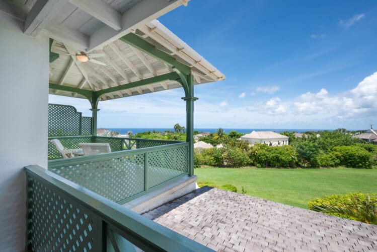 The two upstairs bedrooms each open onto private terraces where you can take in the panoramic ocean views and enjoy the cooling island breeze. The third bedroom, located on the ground floor, flows onto a covered patio with an outdoor dining area, an inviting spot for lingering breakfasts, cocktails at sunset, or laid-back evening meals.