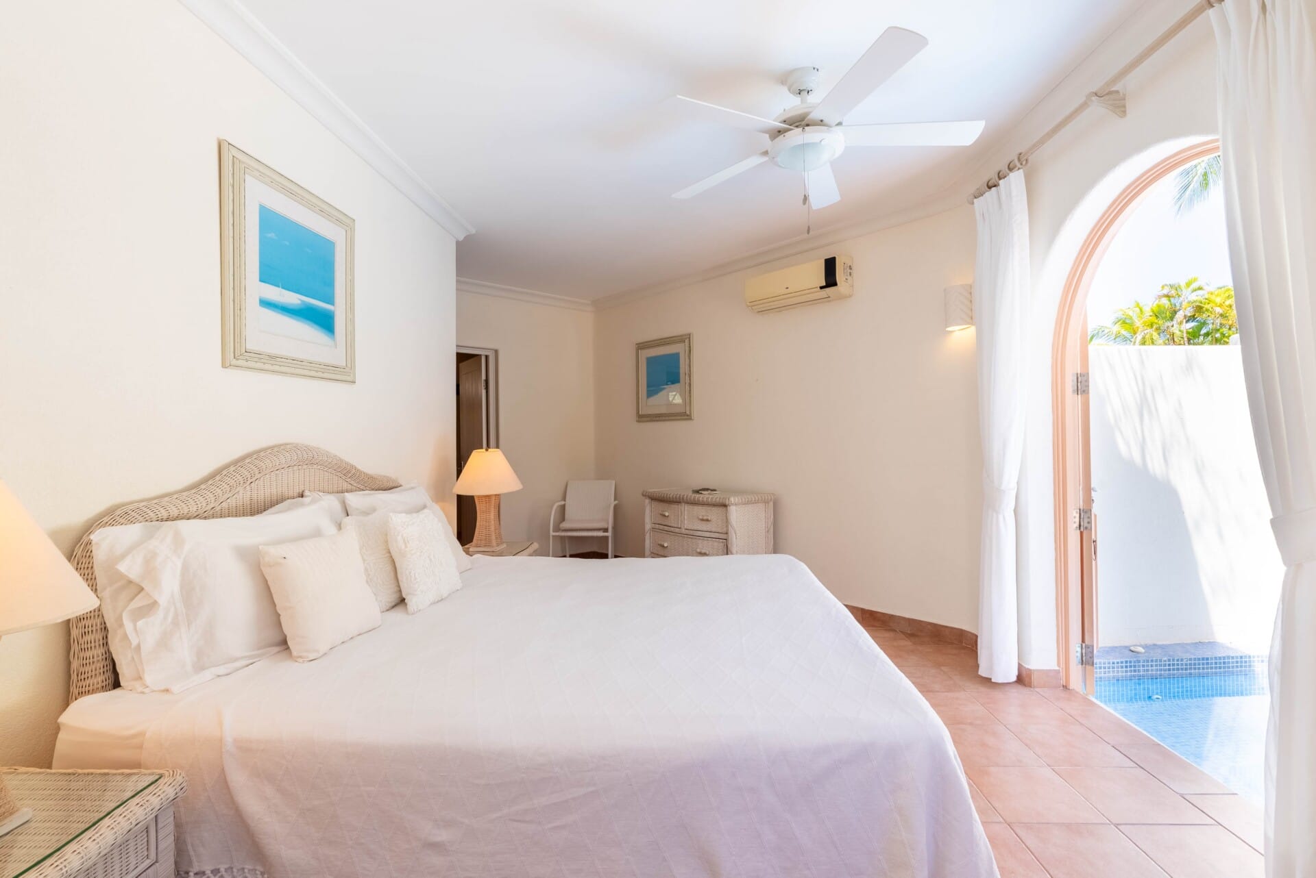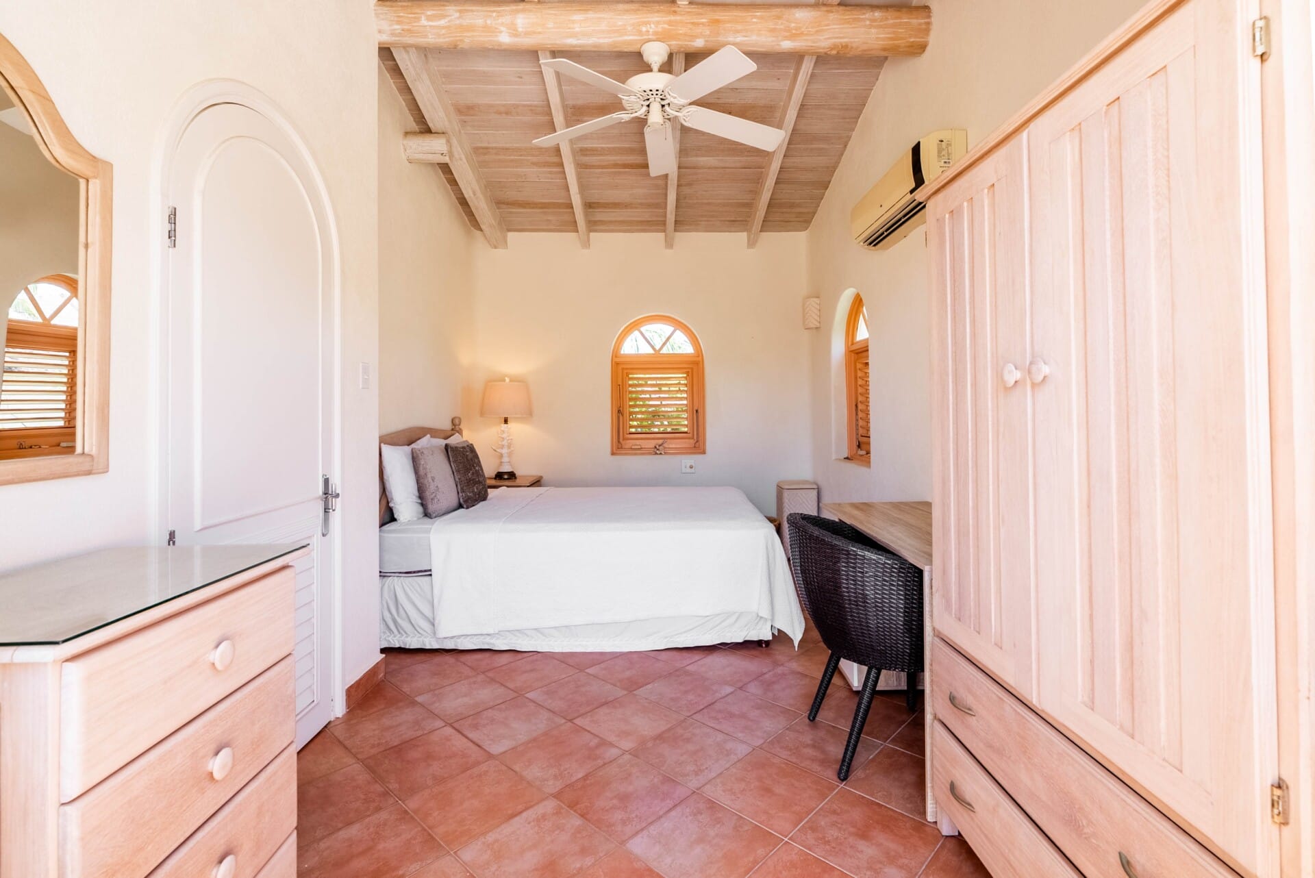 Each of the three air-conditioned, ensuite bedrooms is a private sanctuary of comfort and tranquility. Two are located upstairs, offering peaceful retreats with sea or garden views, while the ground-floor bedroom opens directly onto the private plunge pool and spacious sun deck, an inviting spot to cool off, entertain, or simply bask in the tropical sunshine.