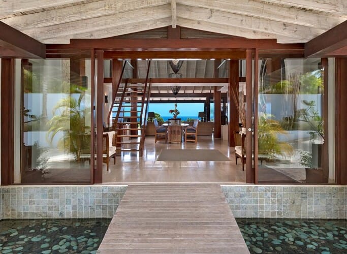 Java Bay is an exceptional Balinese inspired villa set on a ridge within the exclusive gated community of Calijanda, bordering Royal Westmoreland and Sugar Hill. Designed by London architect Harper Downie, the property sits on three quarters of an acre and commands sweeping 180 degree views across Barbados’ West Coast. Despite its elevated, private setting, the villa is only a five minute drive from Holetown, where beaches, restaurants and shopping are easily reached.