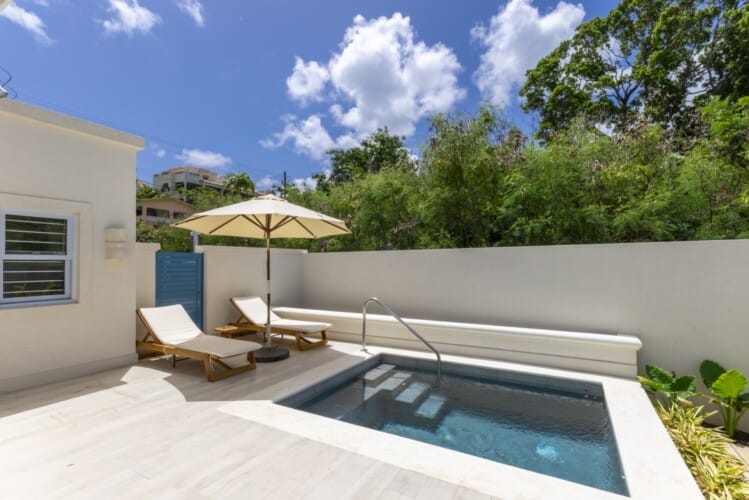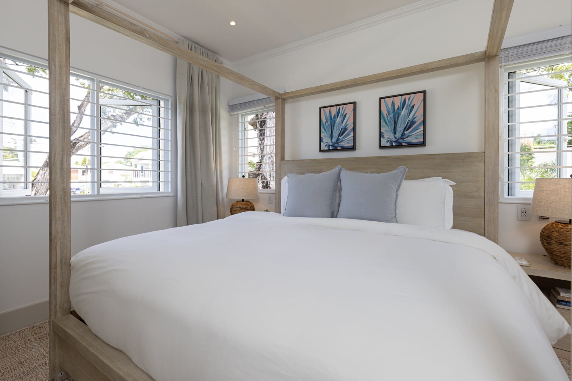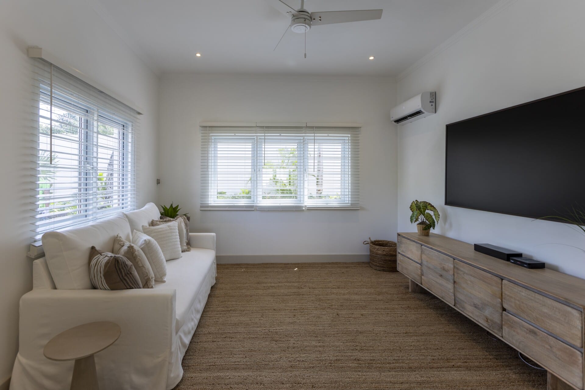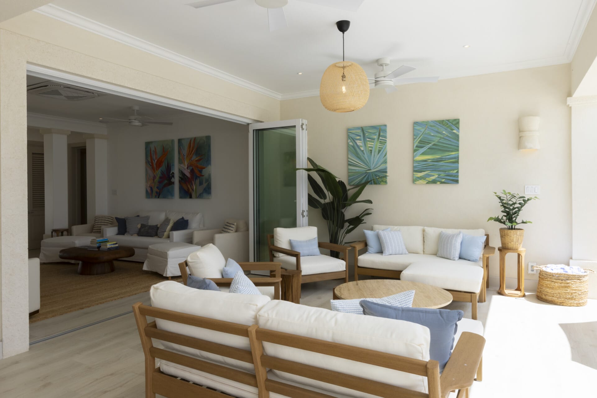 Just behind Kaiso sits Kai, a welcoming three bedroom garden villa that offers a quieter, more secluded atmosphere while still enjoying dedicated beach access. This home is ideal for guests who appreciate privacy and calm, with a private plunge pool, a semi covered patio, and tropical landscaping that creates a peaceful retreat. The interiors are warm and relaxed with playful Caribbean touches, and an additional flex space works well as a home office or overflow sleeping area when needed. Although conveniently close to the main road, thoughtful design ensures the villa remains tranquil and comfortable.