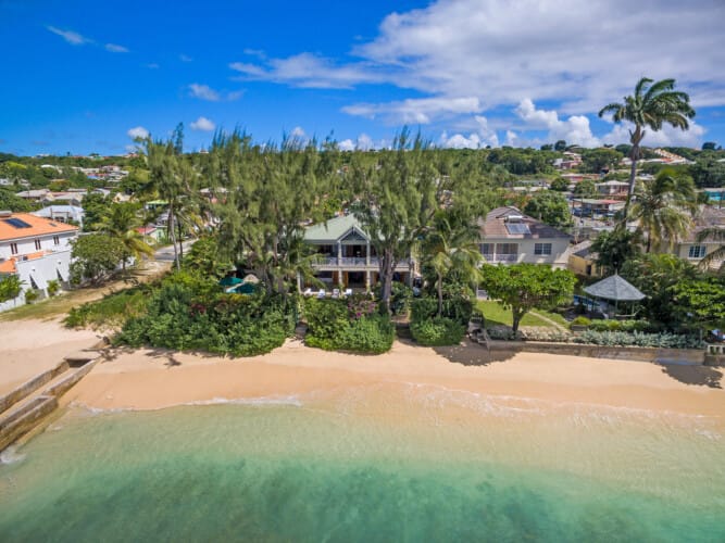 Set directly on the sand, this two-storey Barbados holiday villa embraces sweeping ocean views and the timeless character of traditional Barbadian homes.