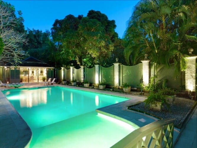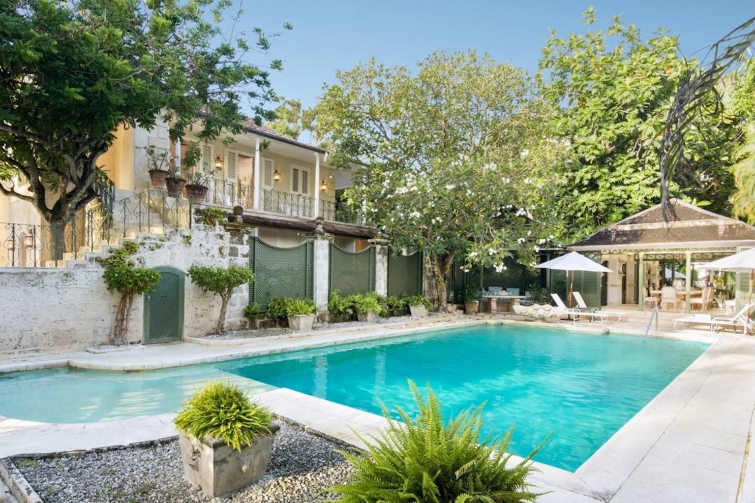 Designed by the renowned Oliver Messel, this colonial-styled natural coral stone home exudes elegance and charm. The tastefully appointed living room seamlessly transitions to a gracious patio, offering guests an enchanting panorama of the lush gardens and the azure waters beyond. Wander along meandering paths to discover the charming dining gazebo by the sea or pause at the picturesque lily pond, each corner adorned with tranquility and grace. Alternatively, indulge in culinary delights within the elegant dining pavilion, where a magnificent coral stone table, seating fourteen, overlooks the inviting swimming pool and verdant garden.