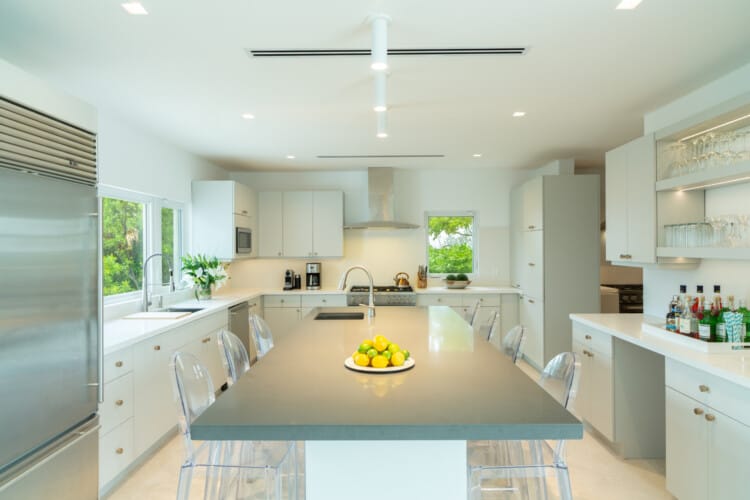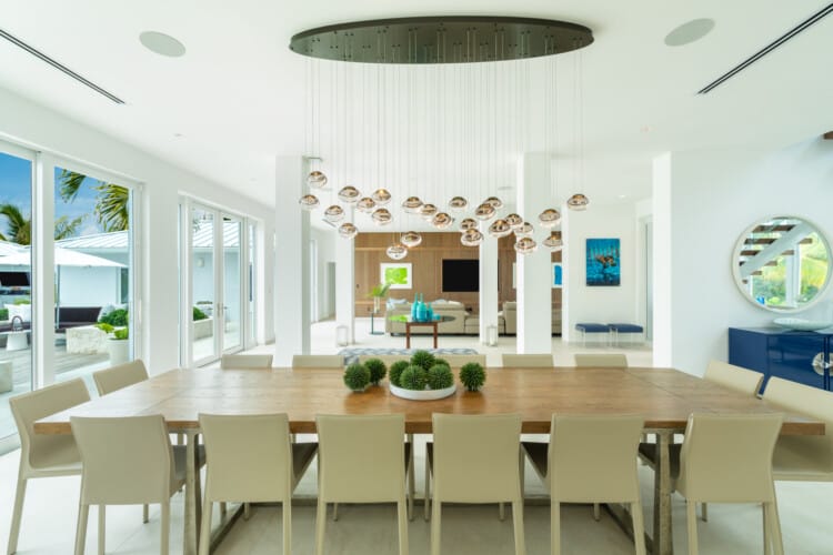 Life at Milestone is designed to flow seamlessly between indoors and out. Two newly appointed kitchens in the main house, including a chef’s kitchen with premium appliances, invite long lunches and relaxed evenings, centred around a striking thirteen foot dining table that naturally becomes the heart of the home. Outside, a newly built fifty foot heated pool with Baja decks and an integrated spa takes centre stage, framed by landscaped gardens and the beach beyond. Pavilions for outdoor dining, lounging and entertaining create shaded spaces throughout the day, with an outdoor bar, grill area and television making evenings under the stars especially inviting.