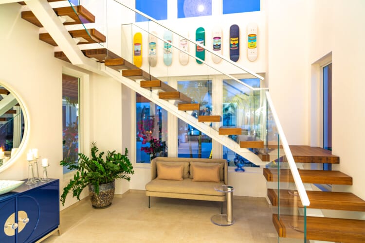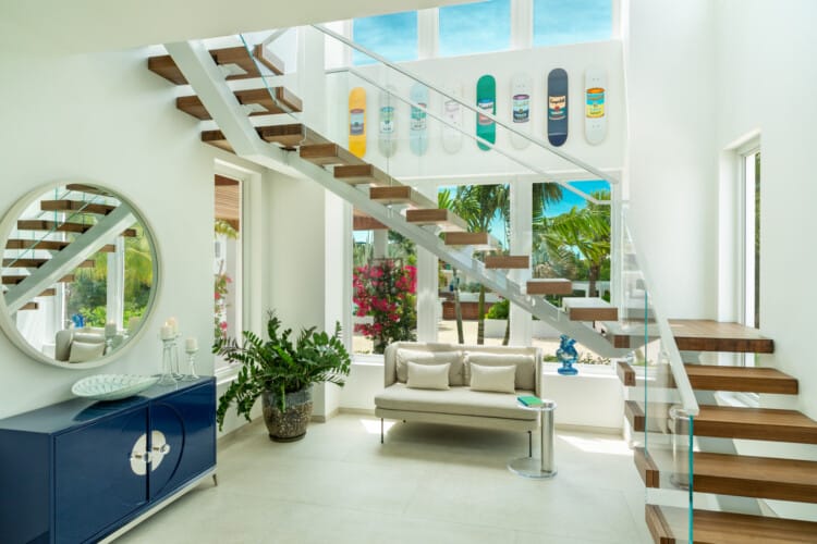 Milestone is a newly relaunched oceanfront retreat set directly on the white sands of Grace Bay Beach, offering a rare blend of playful character, polished comfort and exceptional service. Designed as a relaxed yet stylish family home with a whimsical Los Angeles beach house feel, the property sits within the private and exclusive Leeward community, just two miles from the centre of Grace Bay and its celebrated restaurants, boutiques and resorts. From the moment you arrive, the views are striking, with uninterrupted sea vistas and a sense of openness that defines life at the water’s edge.