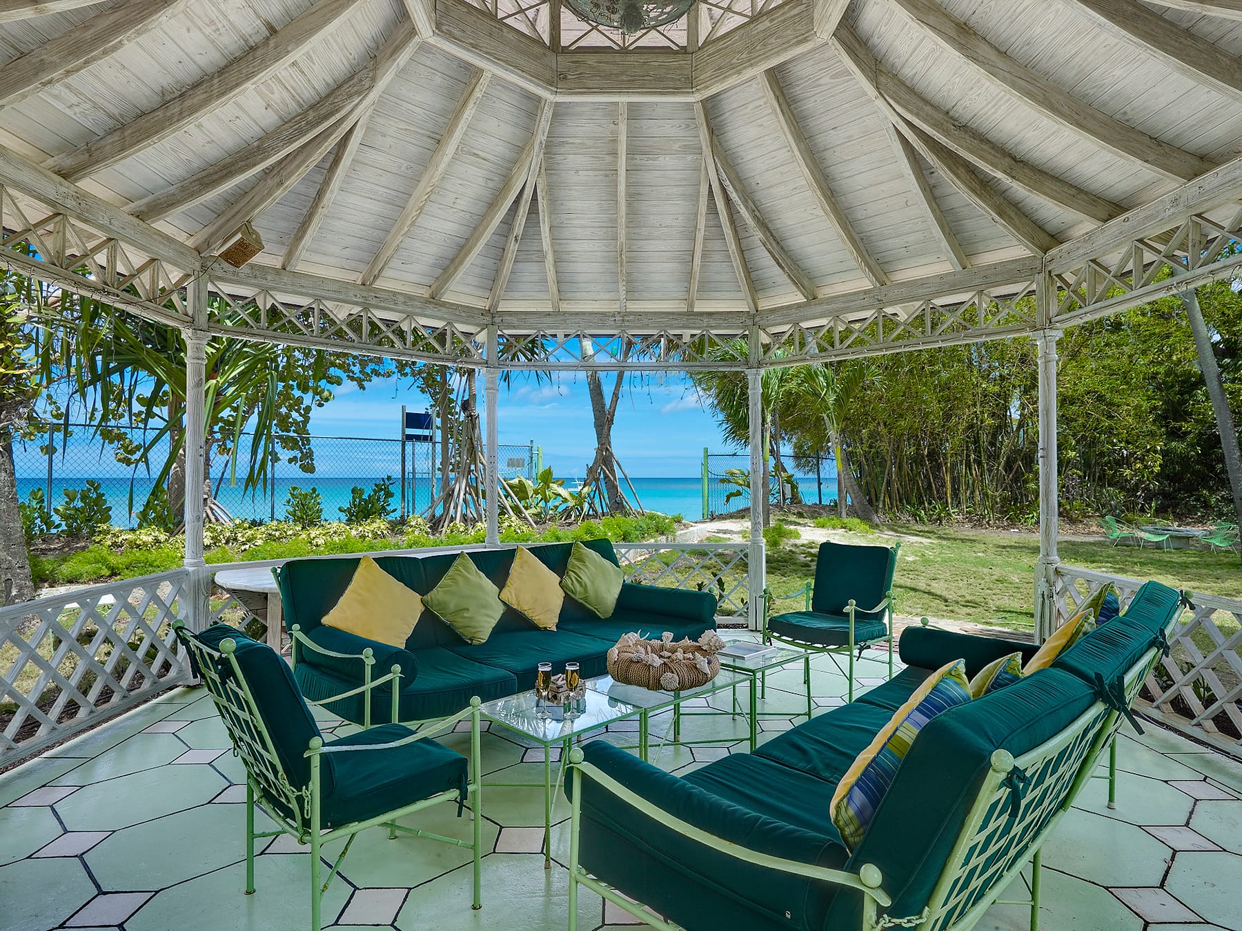 Beyond relaxation, the estate also offers spaces for light activity and family friendly fun, including an open air gym and a pickleball court tucked within the gardens. For larger groups, additional accommodation is available in charming chattel houses and a separate guest cottage, all with en suite bathrooms, allowing the estate to host up to eighteen guests while maintaining privacy and comfort.