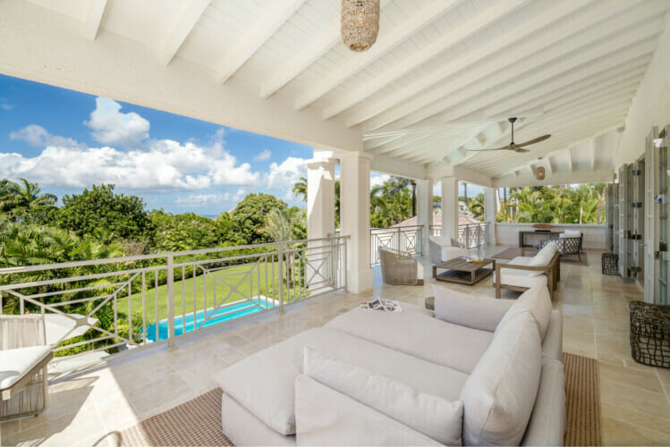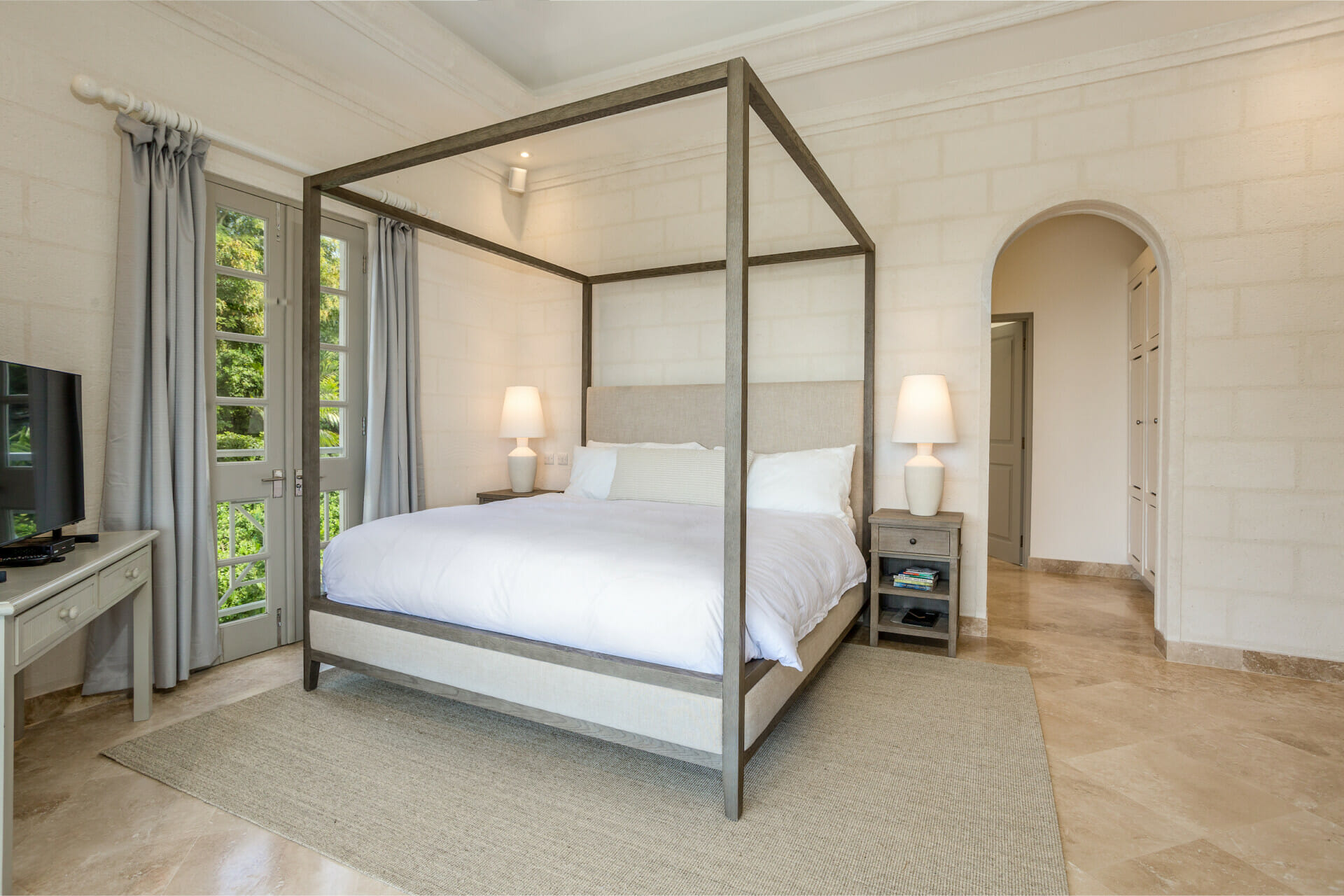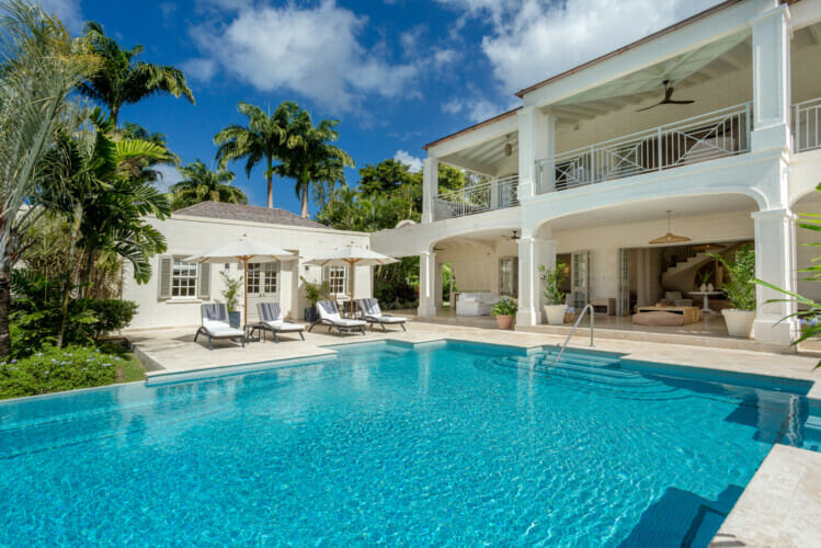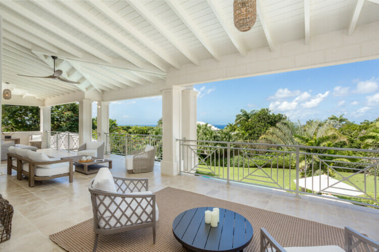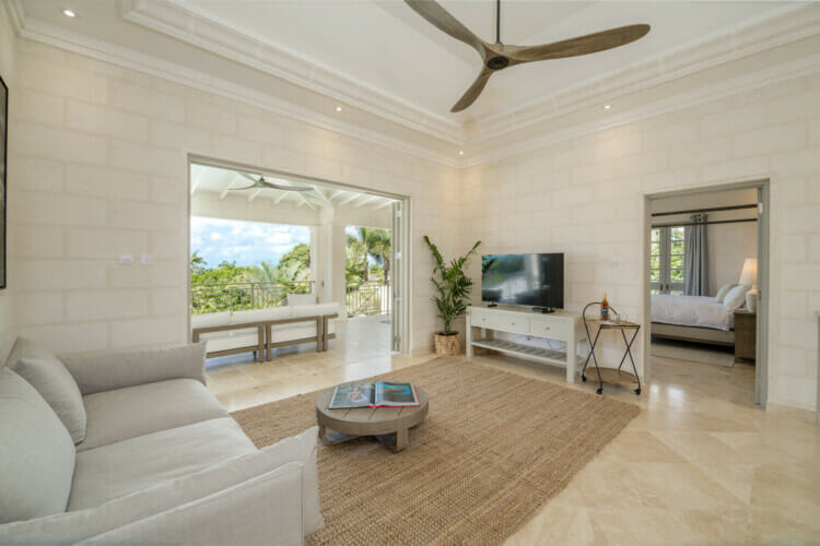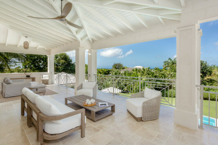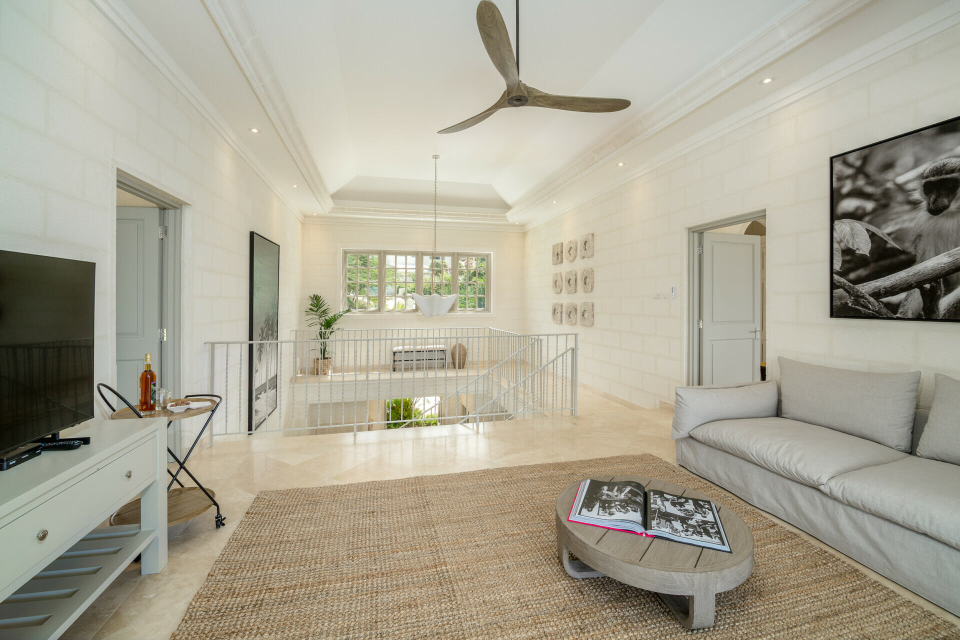 This contemporary five bedroom villa is set within a prestigious gated community on Barbados’ West Coast, offering a refined and private setting for a relaxed island escape. Each bedroom features a king bed and its own en suite bathroom, creating a comfortable retreat for couples, families, or groups travelling together. Two spacious primary suites occupy the upper level, opening onto large terraces with sweeping views of the Caribbean Sea and the surrounding tropical landscape, while a further en suite bedroom on the main floor provides convenience and privacy.