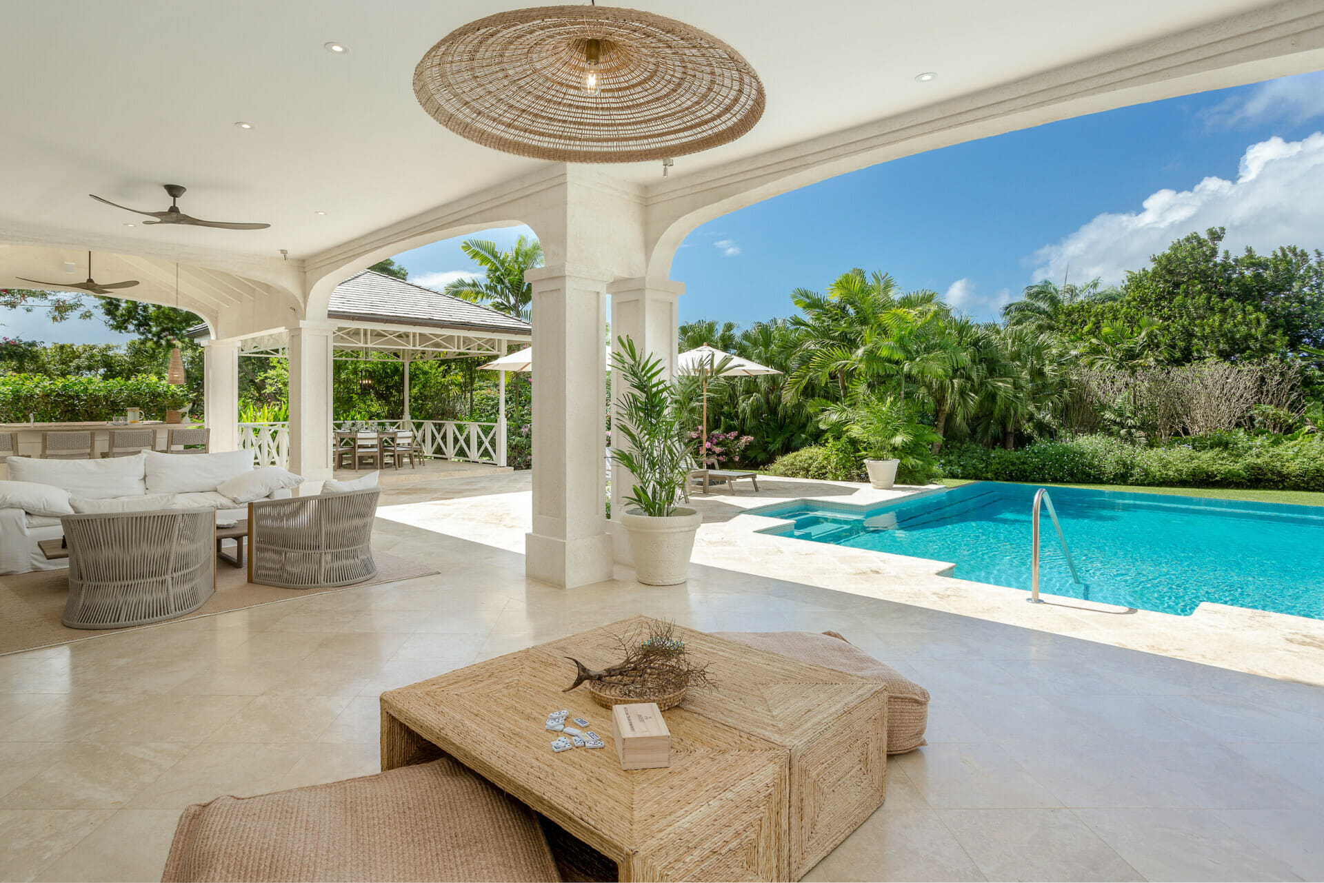 Two additional bedrooms are located within a separate poolside guest cottage, each with its own terrace overlooking the water. Outdoor living is designed to be both tranquil and social, centred around a saltwater infinity pool that appears to merge with the horizon. Surrounding lounge areas offer inviting spaces to sunbathe, read, or enjoy long afternoons in the warm Caribbean air, while lush gardens enhance the sense of calm and seclusion. A Sonos sound system throughout the property allows you to create your own atmosphere, whether for quiet evenings or relaxed gatherings with friends and family. The villa is ideally positioned for exploring the island, with Weston Beach just a short drive away and Holetown close by for shopping, dining, and entertainment.