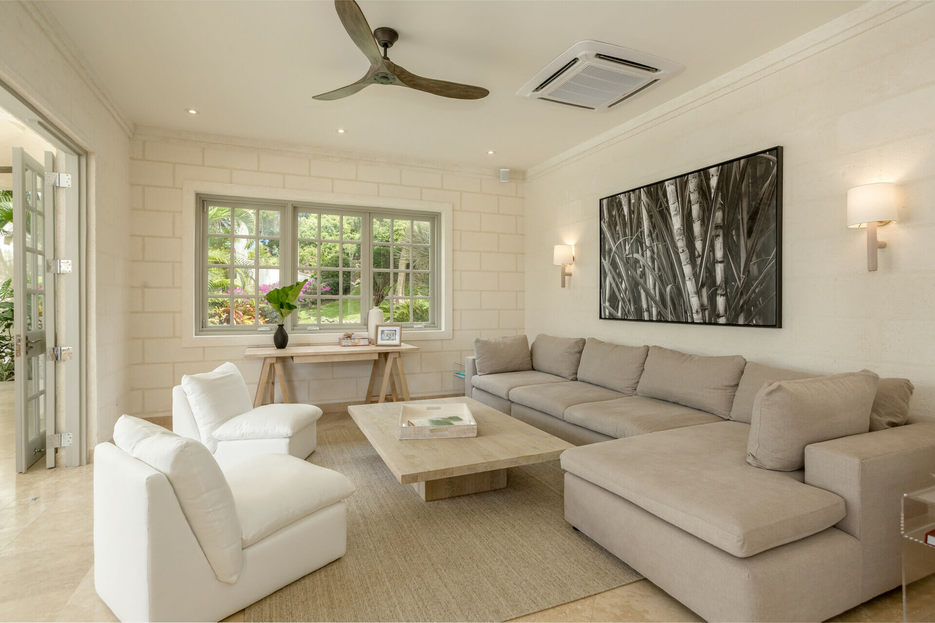 Housekeeping is included to ensure your stay feels effortless, with cook or chef services available on request for those who prefer to fully unwind. Thoughtful features such as an electric vehicle charger add further convenience. Guests also enjoy complimentary access to the beachfront facilities at the elegant Fairmont Royal Pavilion, where sun loungers, umbrellas, and beach amenities await, along with preferred pricing at the bar and restaurant. Combining contemporary design, generous space, and easy access to the best of the West Coast, this villa offers a polished yet relaxed Barbados holiday experience.