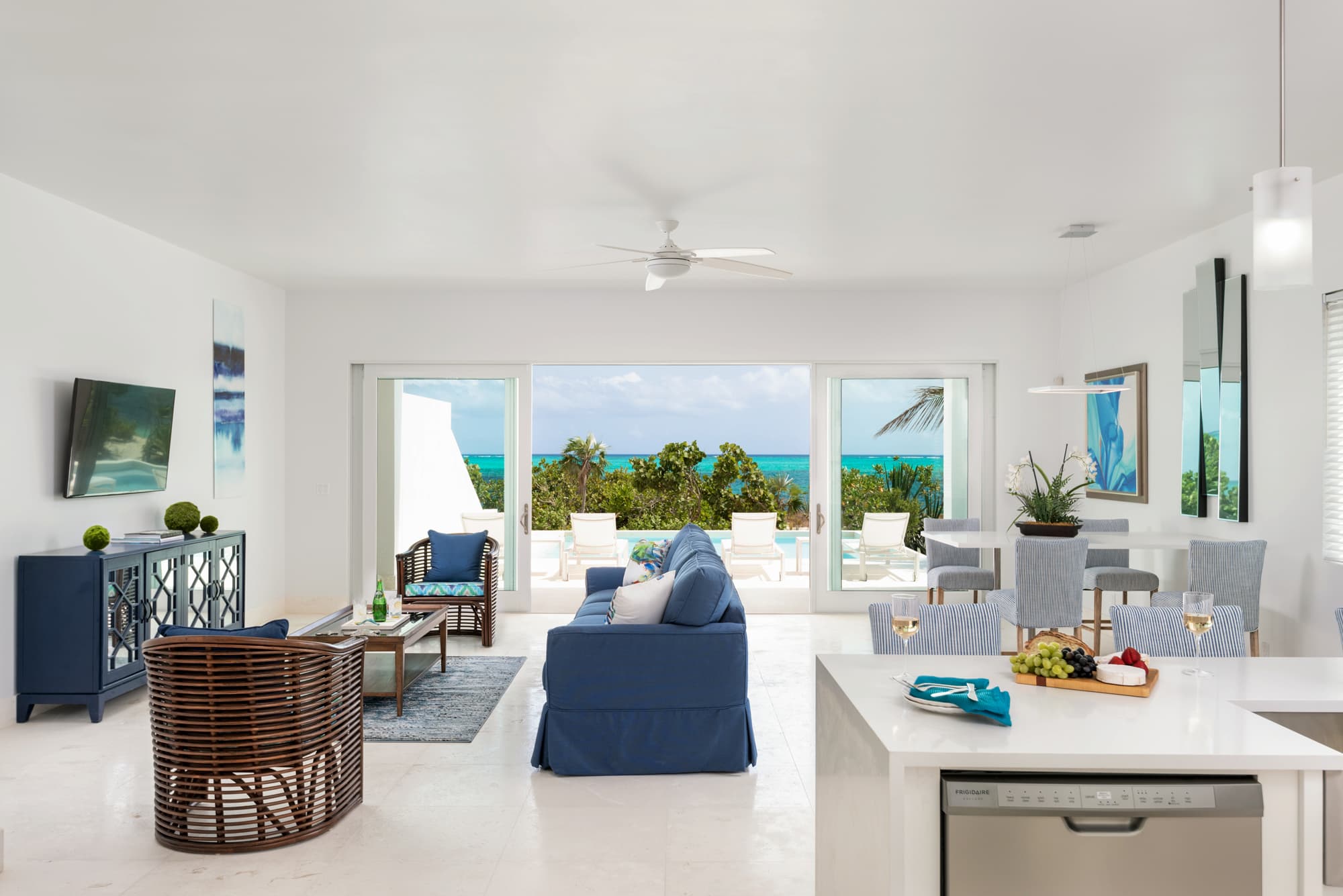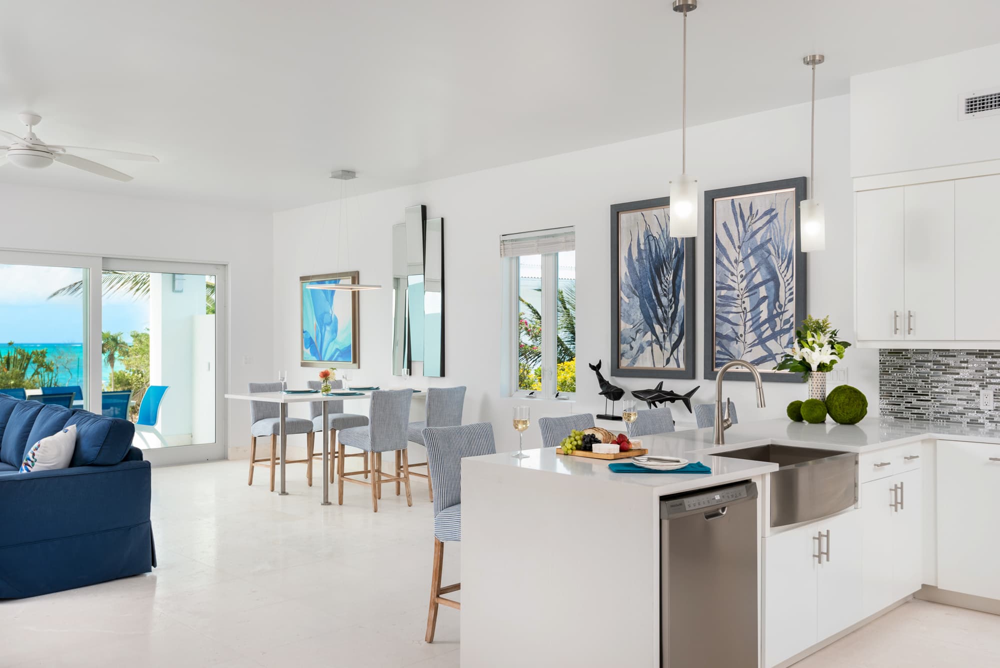 Set directly along the shimmering shoreline of Turtle Cove, Sandpebble is a contemporary three-bedroom beachfront villa designed for relaxed, effortless island living. With sweeping ocean views and a sunlit terrace just steps from one of Providenciales’ most renowned snorkeling spots, this stylish retreat offers the perfect setting for families or groups of friends seeking both comfort and connection.