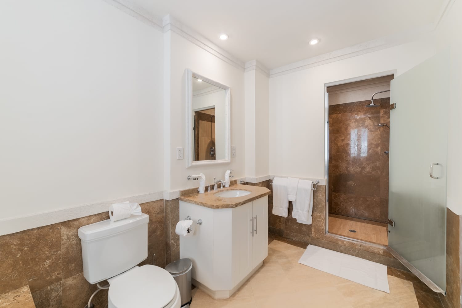 Each spacious bedroom seamlessly combines Caribbean charm with modern luxury, featuring elegant decor, air conditioning, and en-suite bathrooms. The master bedroom includes a private terrace with ocean vistas, perfect for morning relaxation.