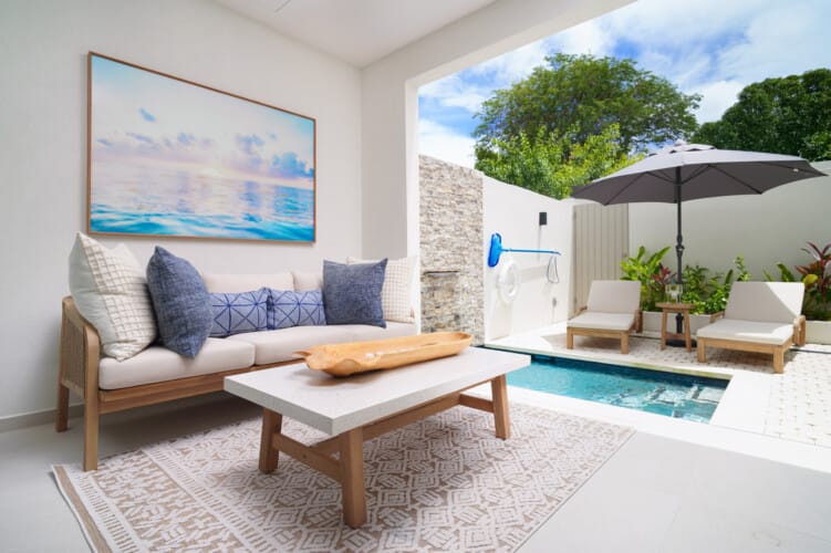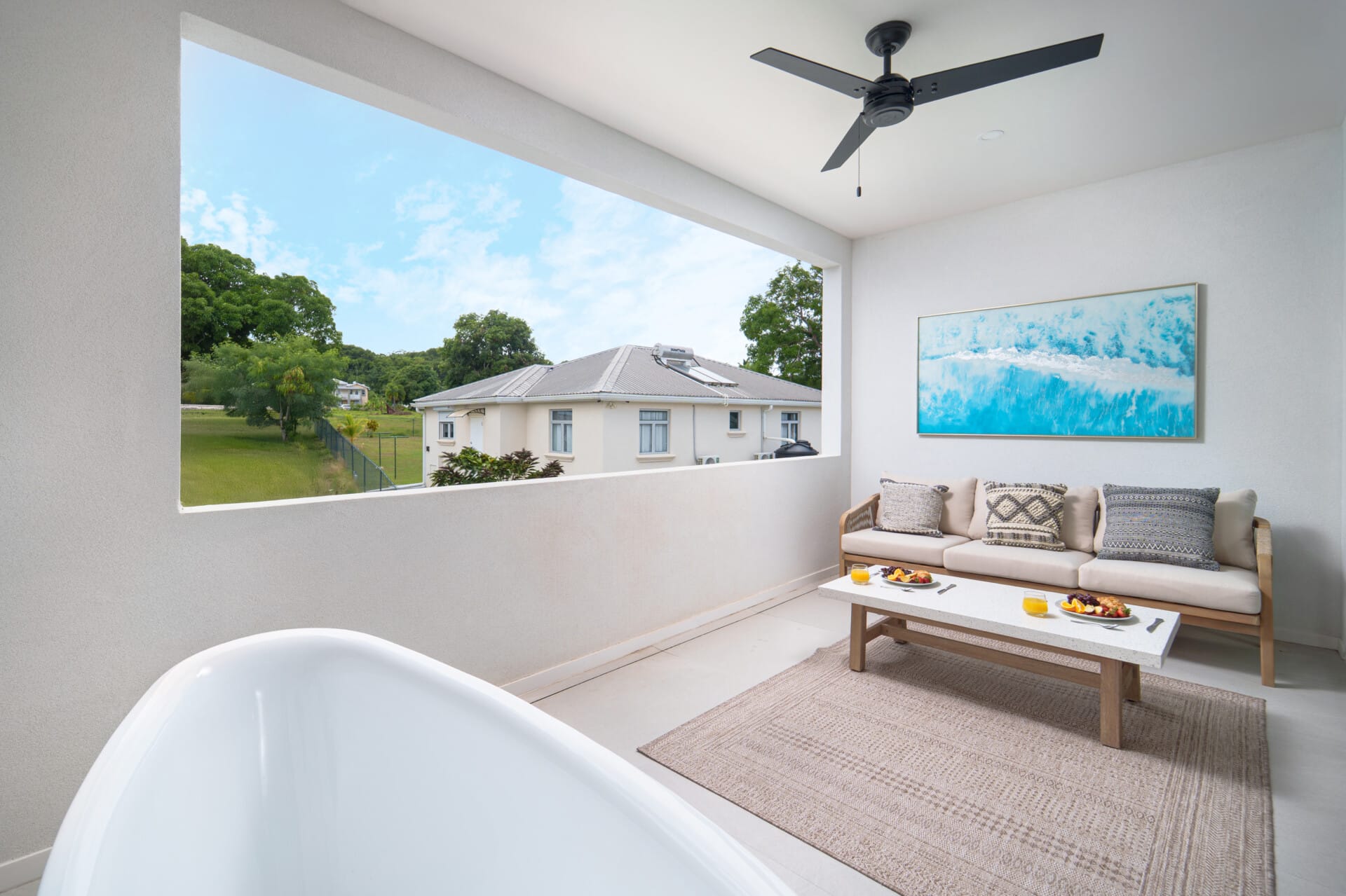 Outside, the private plunge pool and sun loungers invite lazy afternoons in the Bajan sunshine. The intimate outdoor space is perfect for cooling off after a beach day, sharing a drink with friends, or simply soaking in the quiet charm of the west coast.
