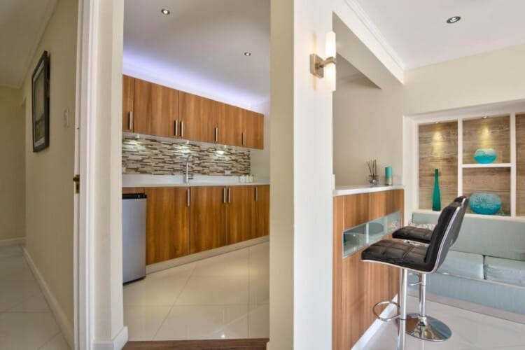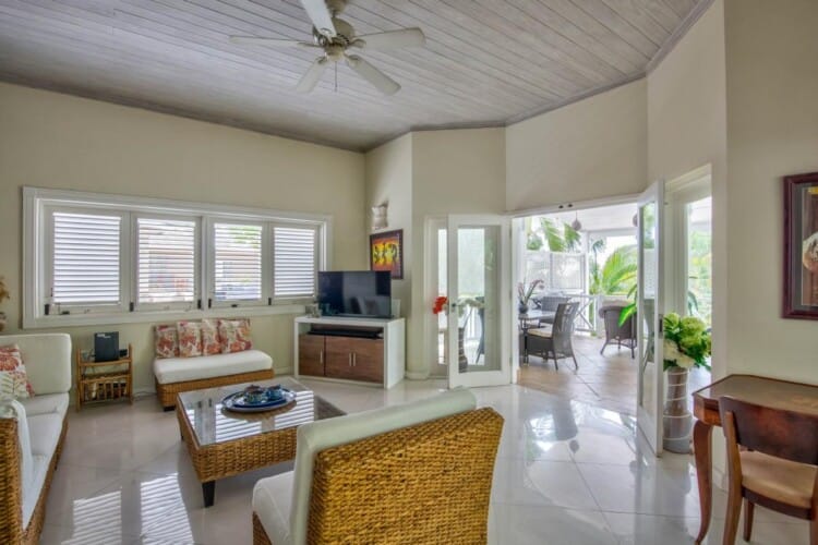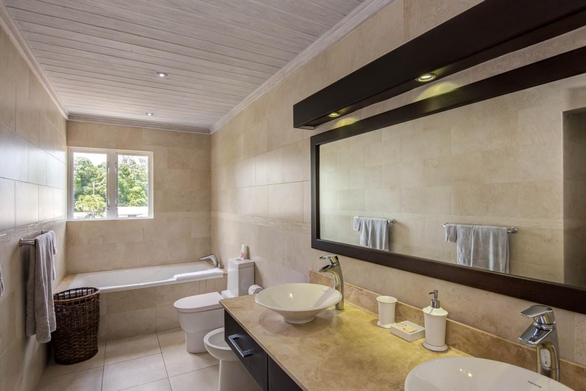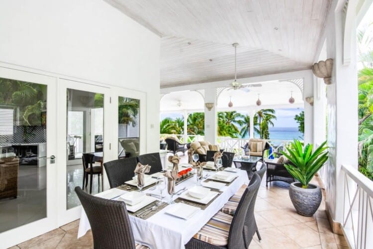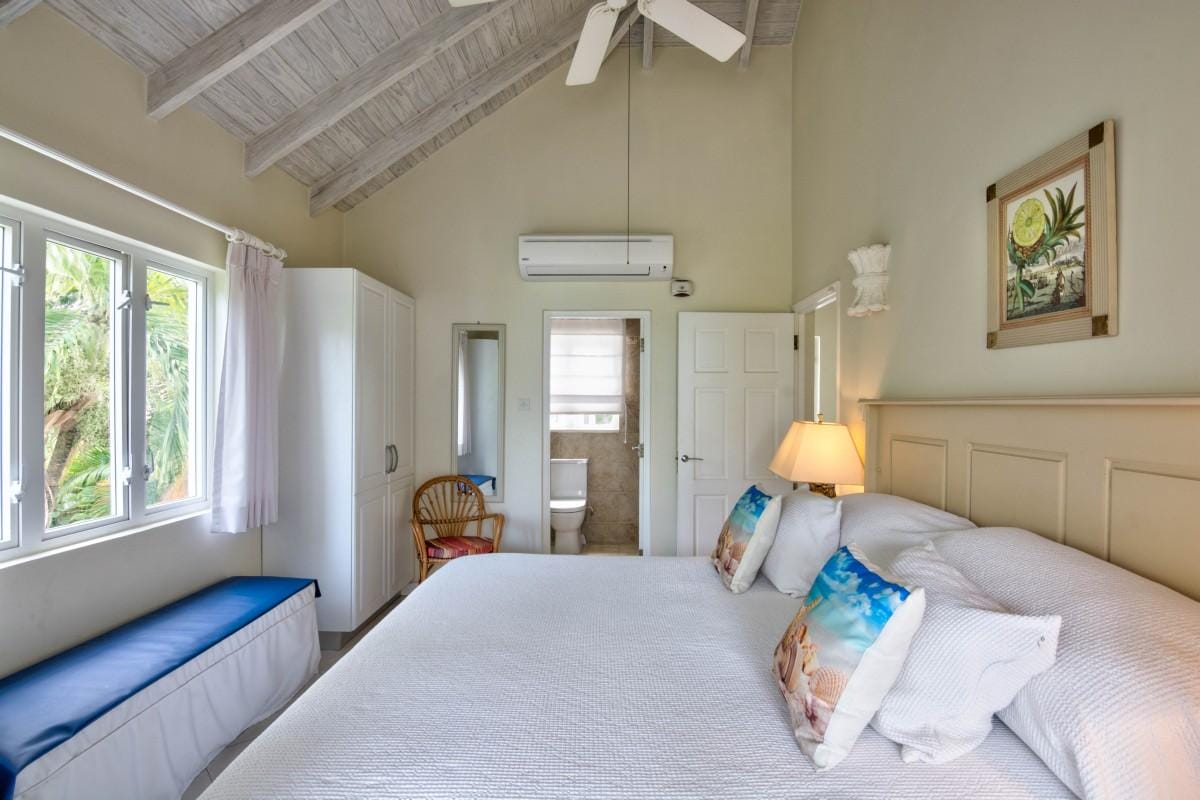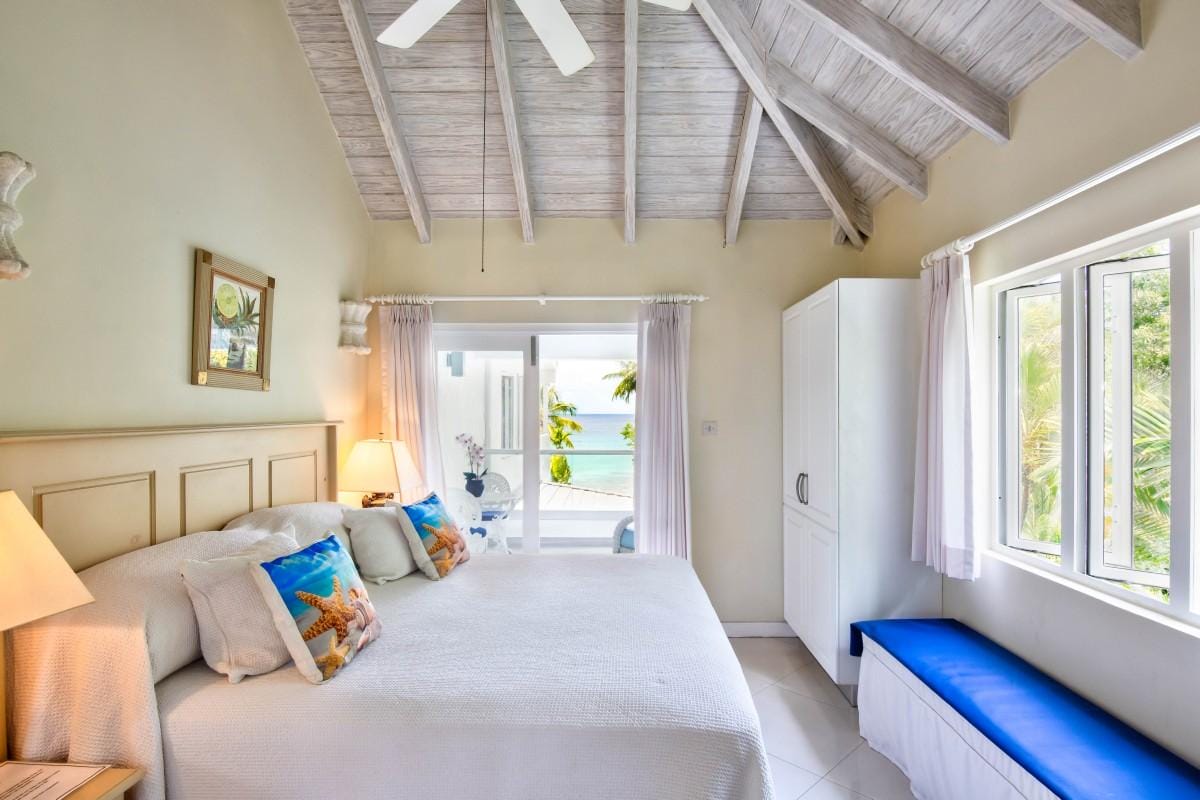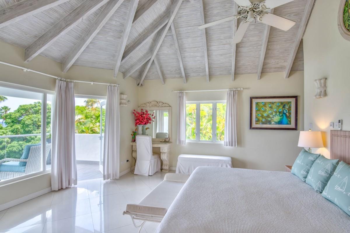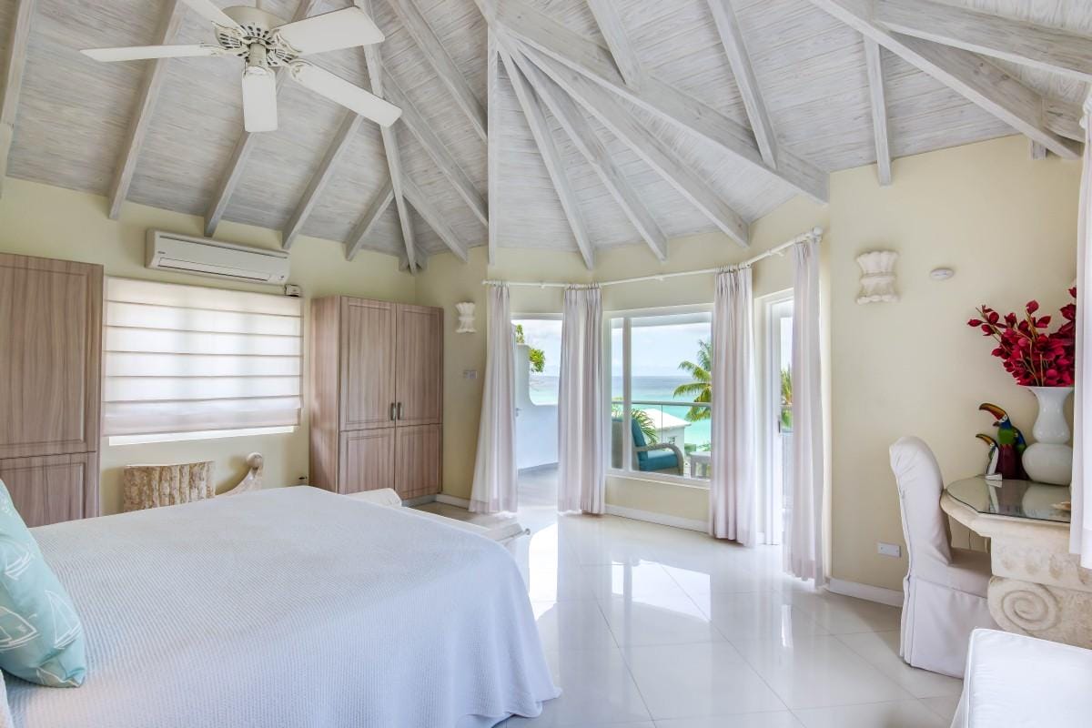 The villa features five air-conditioned bedrooms, each with its own en-suite bathroom. Four are located in the main house, while the fifth sits within a charming self-contained apartment that opens directly onto the pool deck, perfect for morning coffee or keeping an eye on children playing in the pool. The master suite and its private patio enjoy sweeping views of the ocean, making them the perfect place to watch Barbados’ spectacular sunsets.