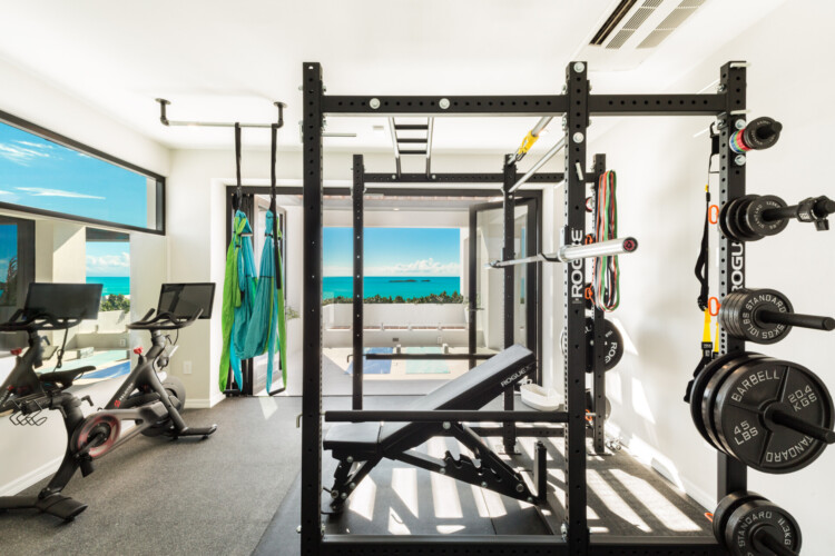 - Free weights, Peloton bike, yoga mats and Rogue fitness power cage