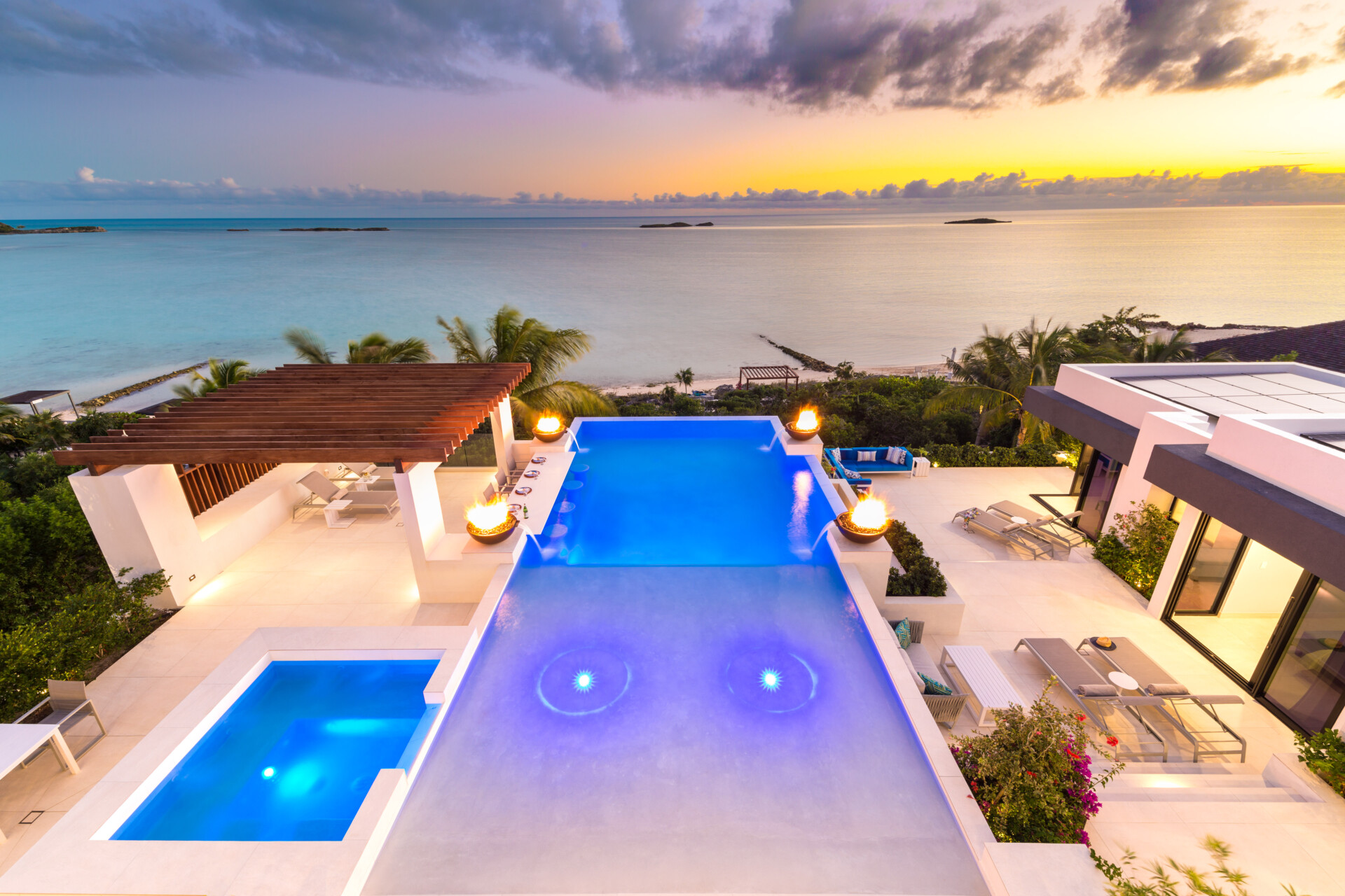 Welcome to Wind Chime Villa, a serene retreat set along the exclusive Turtle Tail peninsula in Turks and Caicos, where turquoise waters stretch endlessly before you and the rhythm of the sea sets the tone for each day. This Bali inspired beachfront sanctuary offers four beautifully appointed bedrooms, four bathrooms and a powder room, all positioned to capture sweeping ocean views and cooling Caribbean breezes. From its south facing orientation, the villa enjoys long hours of sunlight, bathing both interiors and terraces in a warm island glow.